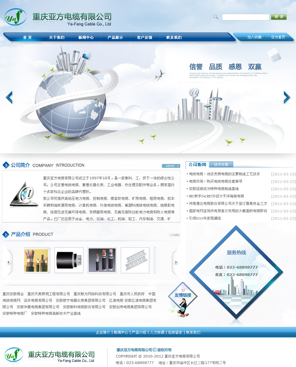 重庆亚方电缆有限公司成立于1997年10月,是一家集科、工、贸于一体的综合性公司。公司主营电线电缆、兼营仪器仪表、工业电器、热处理及配件等业务,拥有国内十多家知名企业的品牌代理权。